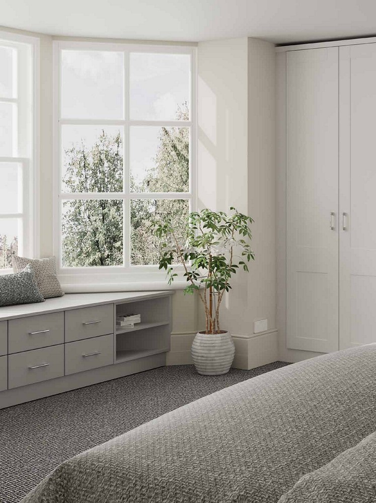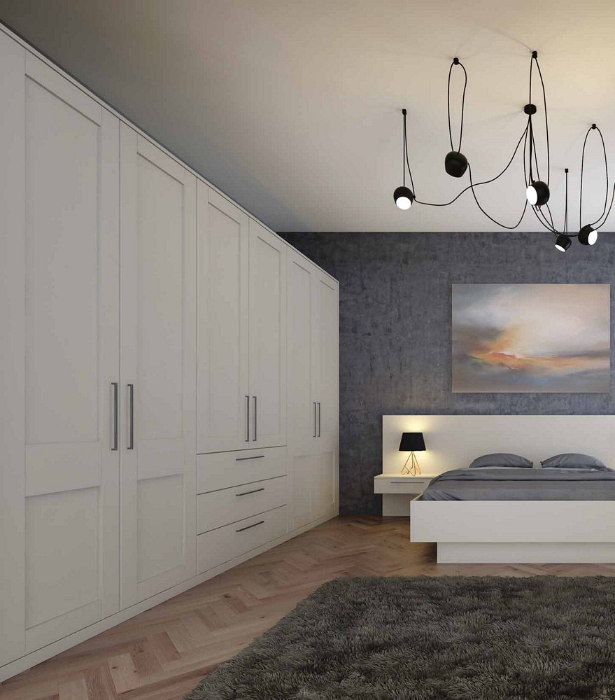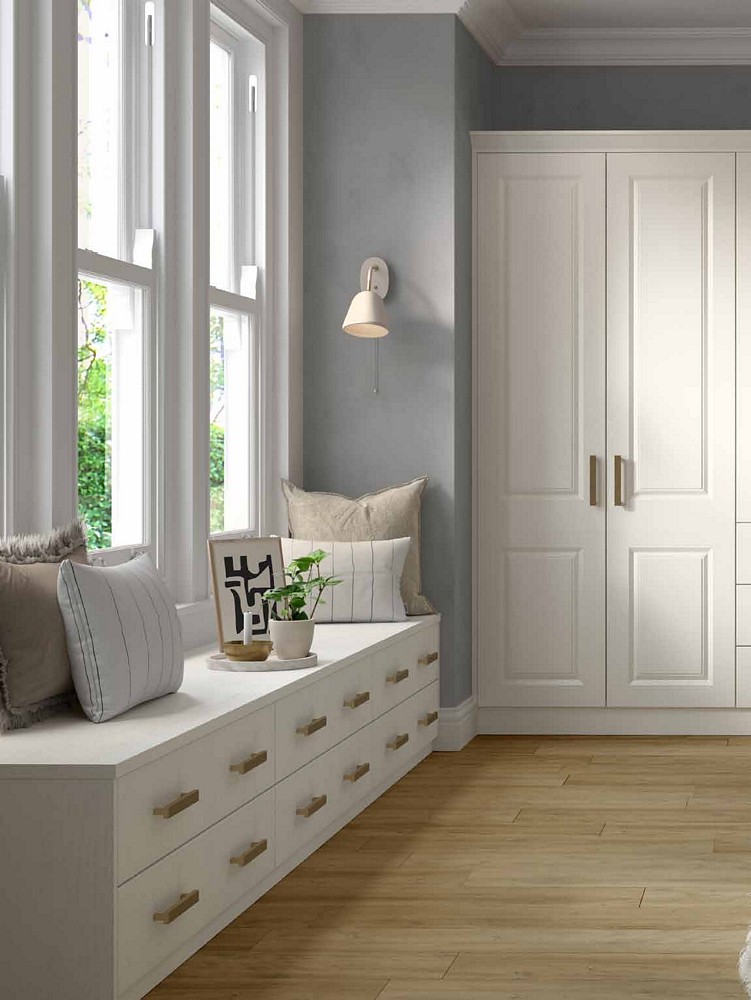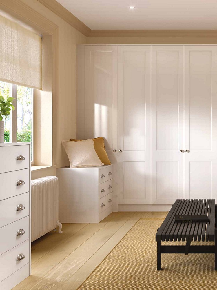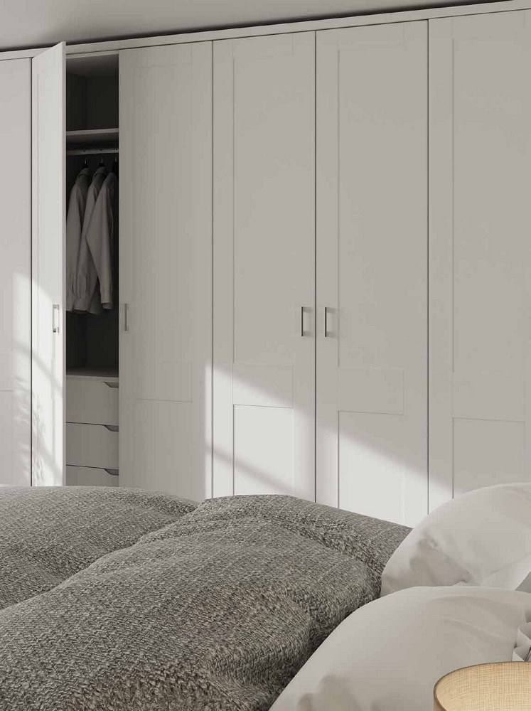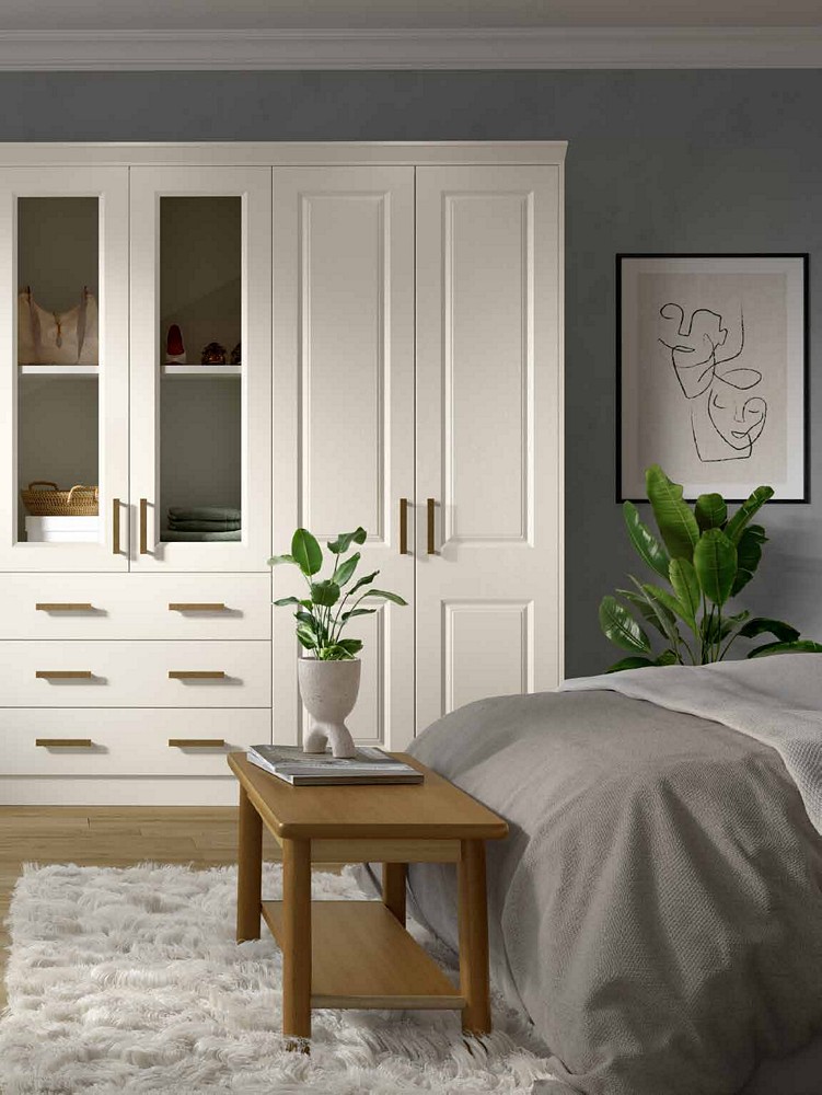 • For those who appreciate timeless elegance, our traditional bedrooms feature beautifully panelled doors influenced by the classic Shaker design. These doors are expertly coated with a foil wrap to provide a subtle matte finish, available in a variety of colours to seamlessly blend with your existing décor.