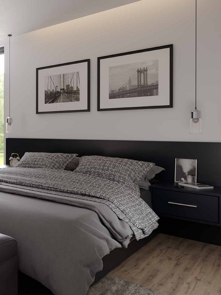 • Maintaining a modern aesthetic, these bedrooms stand out with a unique twist.