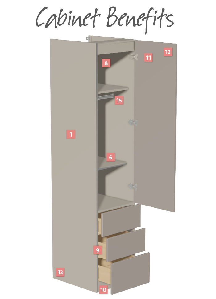 1. 18mm High Density MFC cabinets in 41 finish options