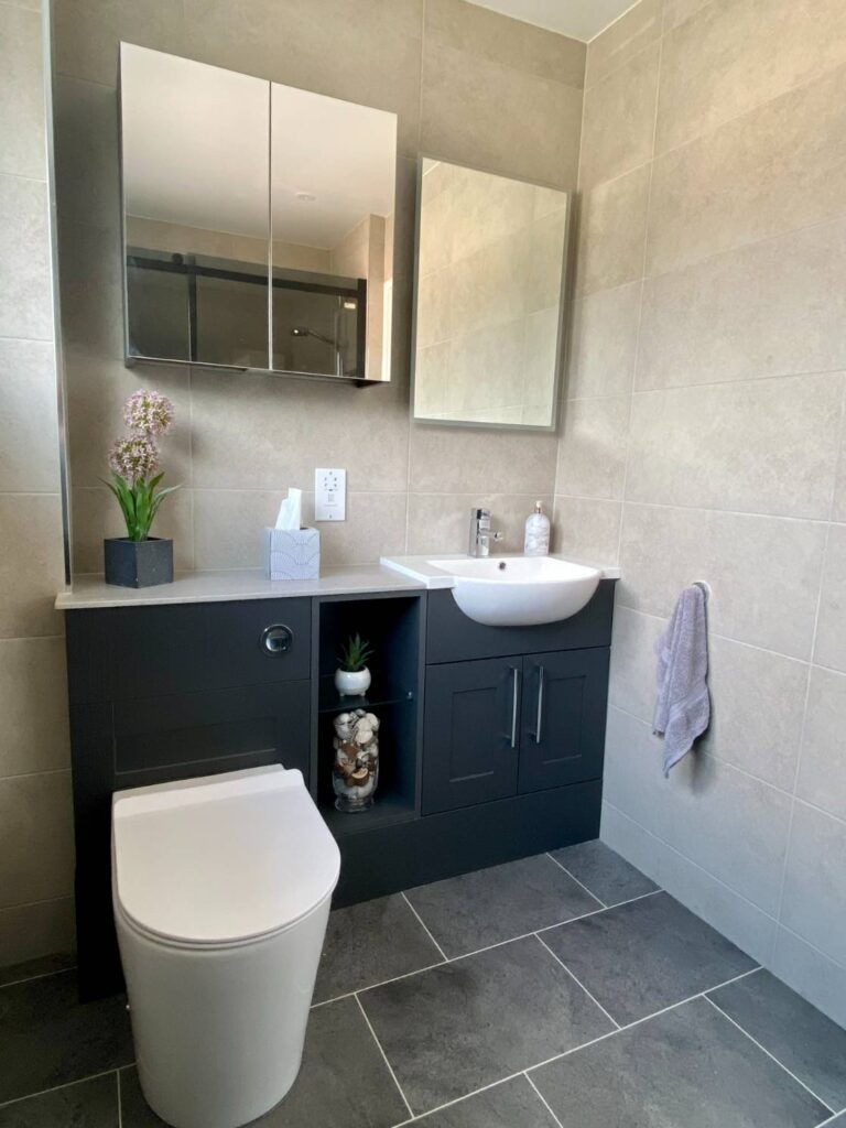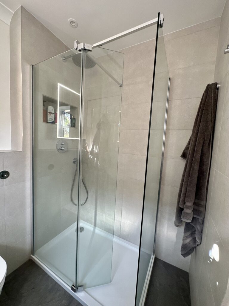 ”We had our kitchen transformed by Kitchen Creators in 2020 and really delighted invited them back to look at our en-suite and bathroom. Jo and Jason drew up plans and Kym & Tim – “The Dream Team” started onsite to transform our en-suite. Max, Kym’s apprentice, a keen learner progressed with earnest.